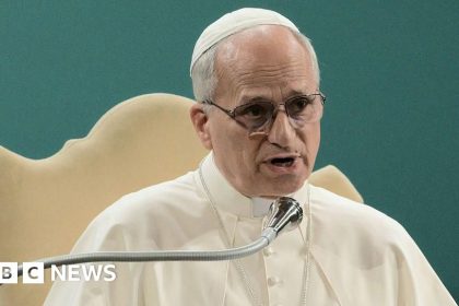 Matt McGrathEnvironment correspondentGetty ImagesPope Leo XIV speaking at the Raising Hope climate…